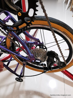 The first is the chain management when folded. Due to the nature of the trifold method, the chain stay length reduces when the bike is folded. The excess chain thus needs to be absorbed or tensioned to prevent it from becoming slack. Without a proper chain tensioner, there may be problems.
