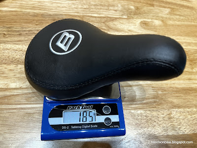 Saddle is only 185 grams which is light, but that it because it does not have saddle rails for adjustment.